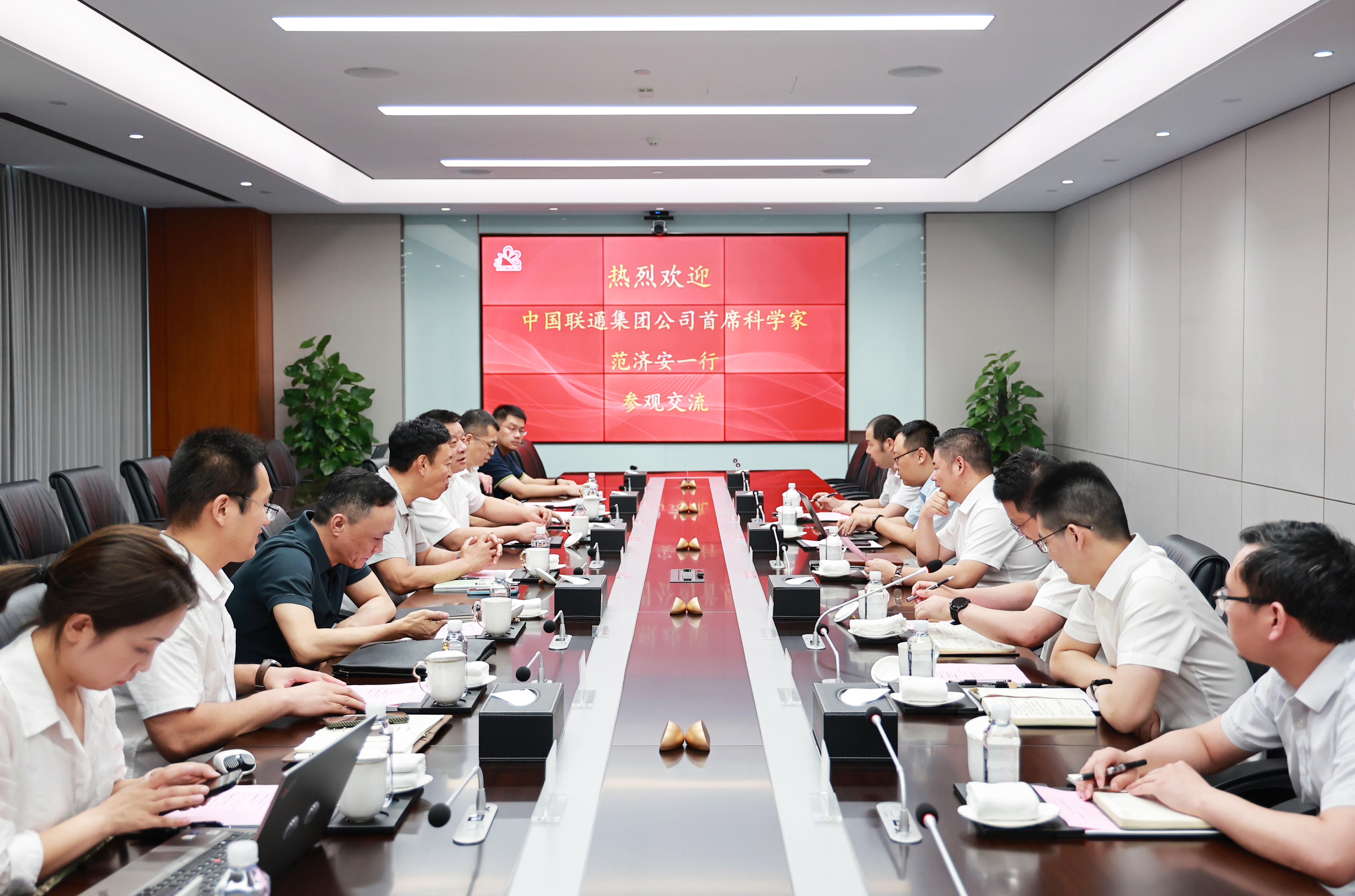 7月31日下午,中國聯通集團公司首席科學家范濟安,浙江省分公司黨委委員、副總經理虞允剛一行到桐昆訪問交流,集團公司執行總裁李圣軍、信息管理部經理許燕輝等熱情接待并陪同座談。