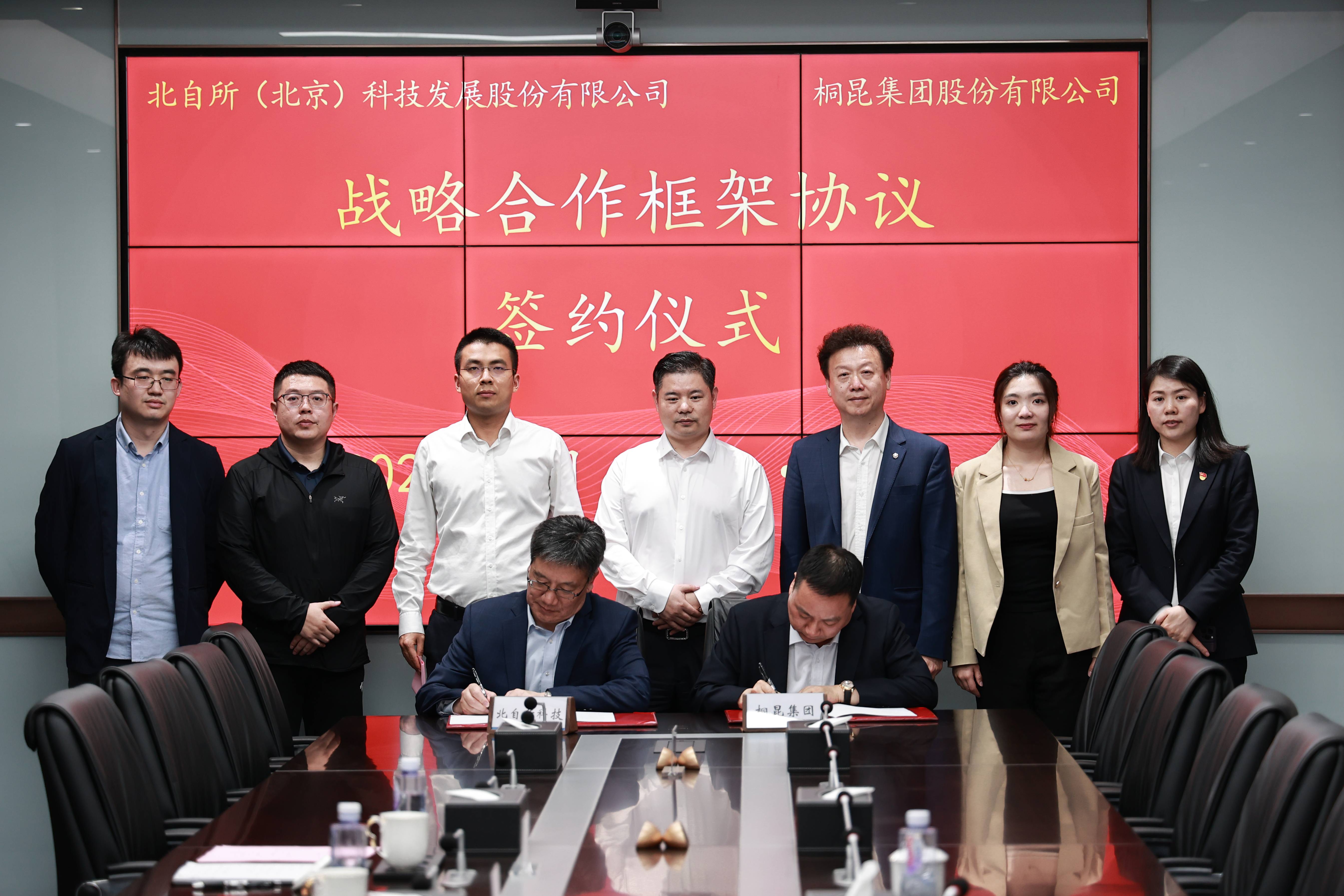 4月20日下午,桐昆集團股份有限公司與北自所(北京)科技發展股份有限公司在桐昆集團總部大樓正式舉行戰略合作協議簽約儀式。集團黨委書記、總裁許金祥與北自所黨委書記、董事長,北自科技董事長王振林分別代表雙方簽約。集團公司副總裁李圣軍、北自科技總經理王勇等相關領導出席并見證簽約。