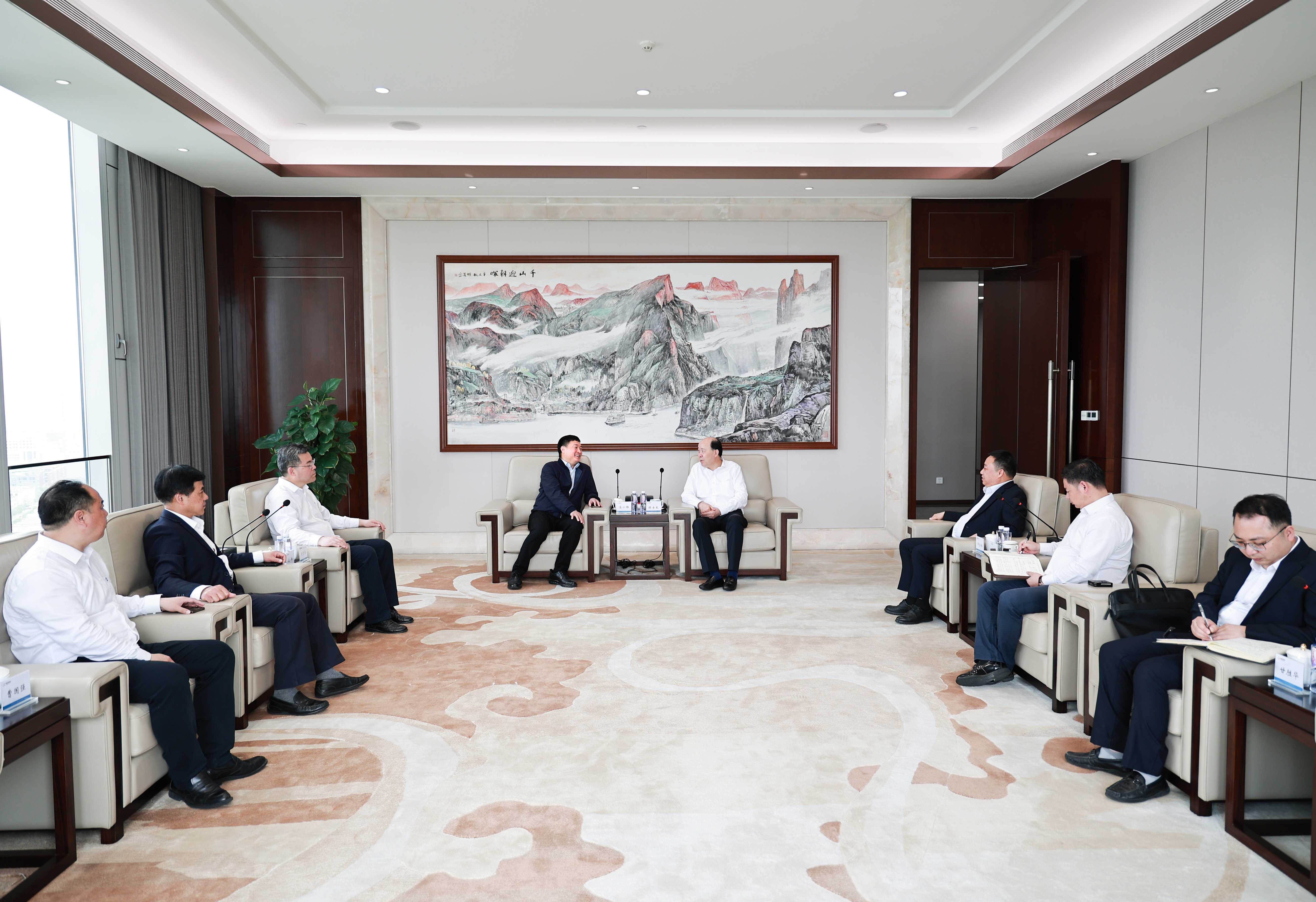 4月19日上午,通用技術高新材料集團有限公司董事長、黨委書記莊小雄,總會計師、黨委委員、通用技術新材北京中麗制機工程技術有限公司董事長劉全喜一行蒞臨桐昆調研,集團董事長陳士良、總裁許金祥、副總裁李圣軍等熱情接待并陪同座談。