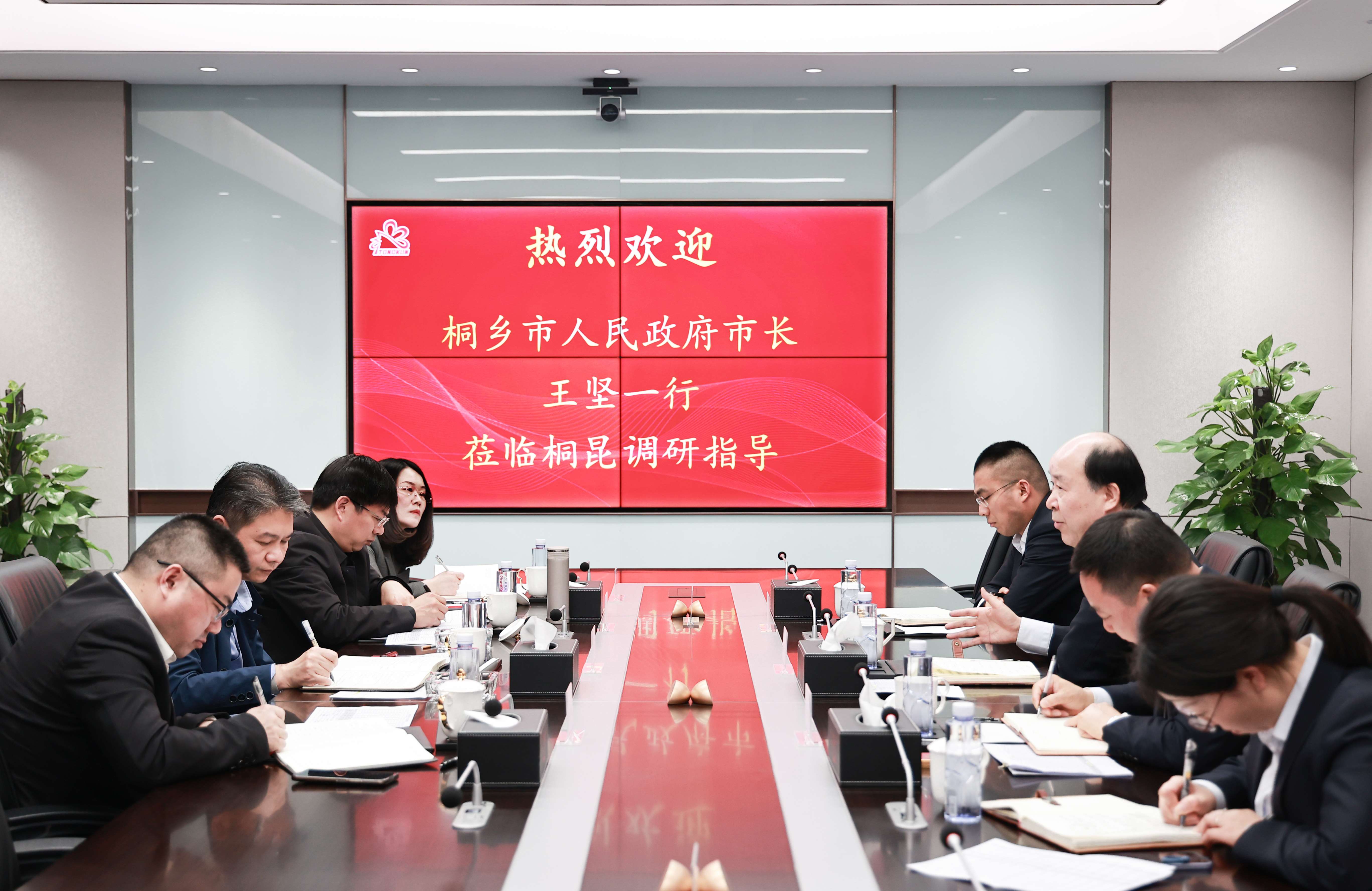 3月13日下午,桐鄉市委副書記、市長王堅與市委常委、常務副市長穆運安率市經信局、商務局等相關領導蒞臨集團調研。集團董事長陳士良、總裁許金祥熱情接待并陪同座談。