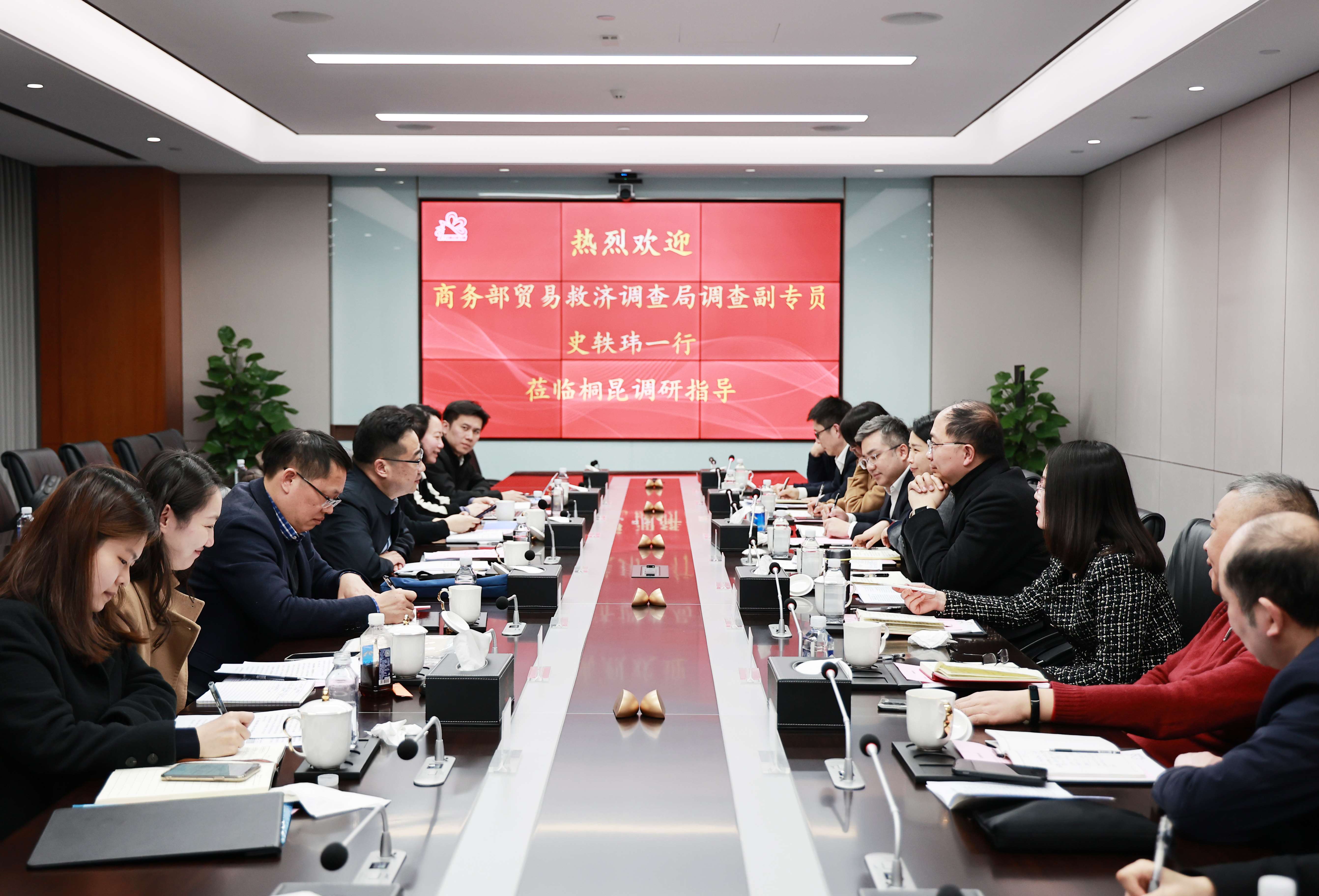 2月23日下午,商務部貿(mào)易救濟調(diào)查局調(diào)查副專員史軼瑋一行在浙江省商務廳貿(mào)易救濟調(diào)查局局長戴連俊、嘉興市貿(mào)促會會長潘國帥、桐鄉(xiāng)市商務局局長張小蕾等領導的陪同下蒞臨桐昆調(diào)研貿(mào)易摩擦案件應對工作,集團副董事長陳蕾、總裁助理徐奇鵬等熱情接待并陪同座談。